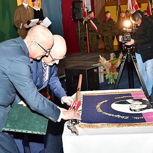 W uroczystości nadania imienia oraz wręczenia sztandaru udział wzięli m.in. Poseł RP Tomasz Szymański, Prezydent Grudziądza Robert Malinowski, Prezydent Elekt Maciej Glamowski, radni Rady Miejskiej, Prezes Zarządu Fundacji na Rzecz Tradycji Jazdy Polskiej Karola Skowrońska, córka płk. Zbigniewa Makowieckiego - Krystyna Makowiecka, dyrektorzy placówek oświatowych z terenu naszego miasta, przedstawiciele miejskich instytucji, stowarzyszeń i kół pułkowych, a także uczniowie, grono pedagogiczne i dyrektor Szkoły Podstawowej nr 16 Rafał Chylewski.