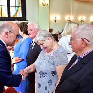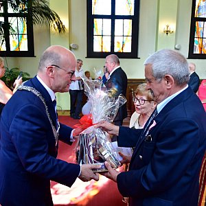 Prezydent Maciej Galmowski dokonał uroczystego aktu dekoracji medalami oraz pogratulował seniorom imponującej rocznicy. Wyraził podziw i szacunek dla zebranych małżeństw, jednocześnie wyrażając swoje uznanie. Podkreślił także, iż ponad pięćdziesięcioletni staż to dowód wzajemnej miłości i zrozumienia, a także piękny przykład mądrego życia, który utwierdza w przekonaniu, iż nawet najcięższe sytuacje stają się lżejsze i łatwiejsze do rozwiązania, gdy dźwiga się je razem.