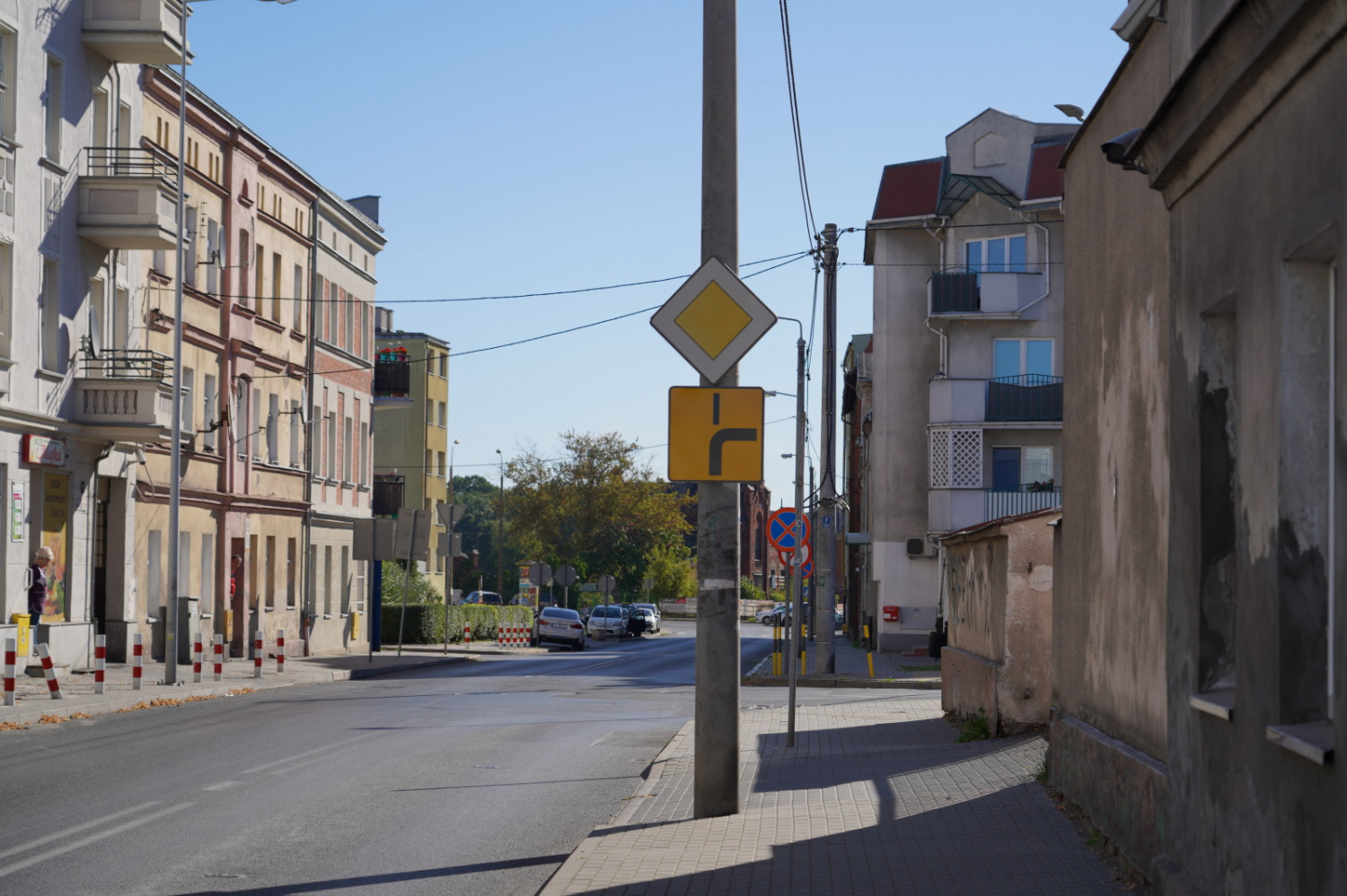 Jadąc ulicą Kalinkową i dojeżdżając do tego skrzyżowania zobaczymy znak T-6a