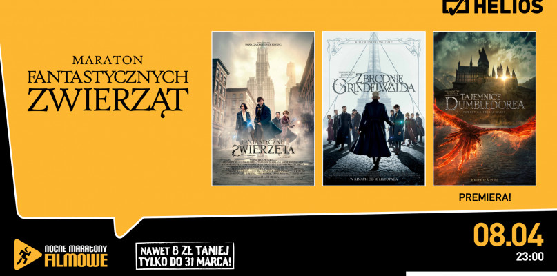Już w piątek 8 kwietnia Nocne Maratony Filmowe Helios zapraszają na Maraton z Fantastycznymi Zwierzętami!