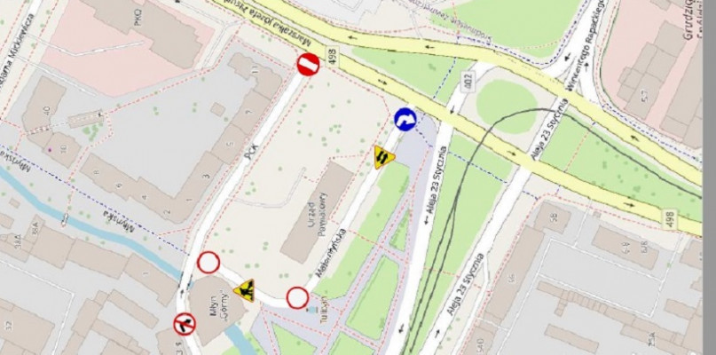 Przejazd ulicą Curie – Skłodowskiej możliwy jest wyłącznie w kierunku ulicy marsz. Józefa Piłsudskiego