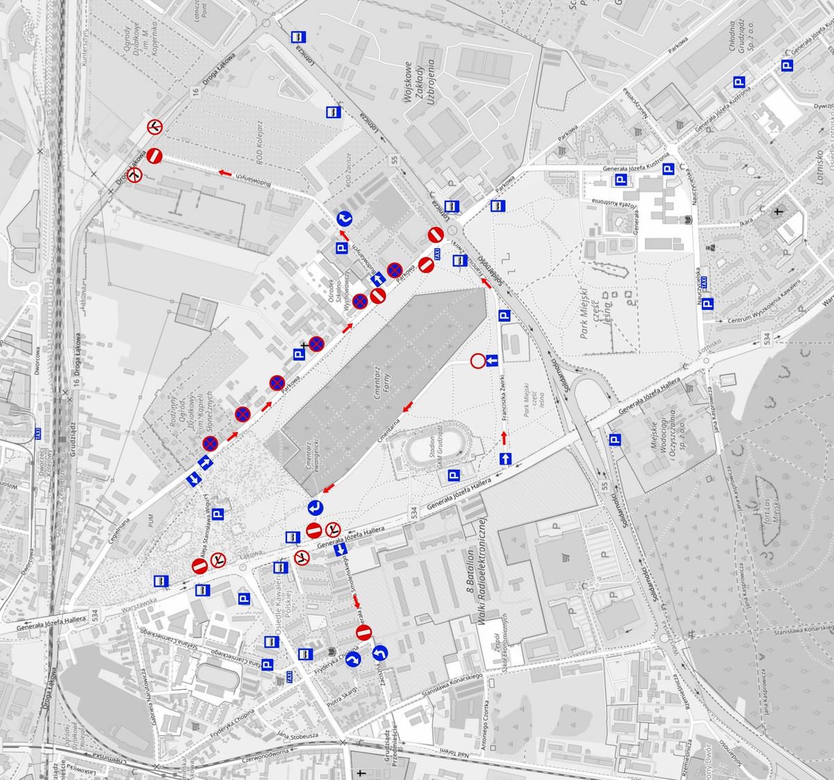 Dla osób z niepełnosprawnością: Wyjątkowo, wjazd będzie możliwy dla pojazdów dowożących osoby z niepełnosprawnością ruchową. Wjazd ten będzie odbywał się wyłącznie od strony ul. Żwirki.