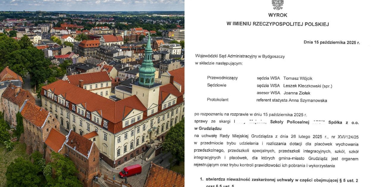 Prawna batalia o zasady kontroli grudziądzkiej oświaty niepublicznej trwa, a Ratusz ponosi w niej kolejne porażki. Wojewódzki Sąd Administracyjny w Bydgoszczy w dwóch kluczowych wyrokach (z 3 kwietnia 2024 r. oraz z 15 października 2025 r.) obnażył wady prawne uchwał Rady Miejskiej. Co więcej, analiza uzasadnień sądowych demaskuje, jak urzędnicy Prezydenta Grudziądza świadomie naginają prawo, interpretując je na swoją korzyść i stawiając się ponad nim.