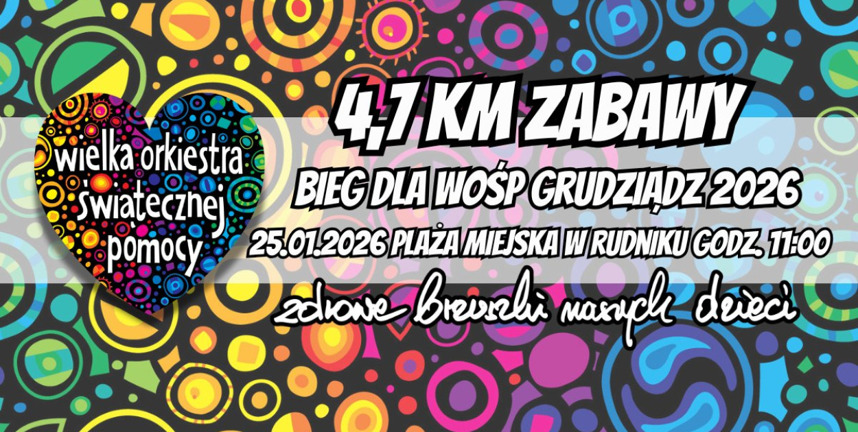 Kolejna edycja naszej imprezy biegowej odbędzie się 25 stycznia 2026 r, w niedzielę, na Plaży Miejskiej w Rudniku. Stamtąd na trasę o długości ok. 4,7 km wyruszymy do wspólnego biegu, bez nagród i mierzenia czasu. Okazji do wsparcia Orkiestry nie zabraknie – poza wpisowym, które przekażemy na WOŚP, będą też tradycyjnie sklepik z upominkami, kawiarenka i niespodzianki. To będzie jak co roku najgorętsza styczniowa niedziela na plaży!Zapraszamy chętne osoby i firmy do współpracy przy organizacji biegu!