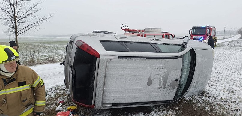 Dzisiaj (9 stycznia) około godziny 9:51 na drodze gminnej w Grucie doszło do groźnie wyglądającego zdarzenia. Samochód osobowy wypadł z drogi i wylądował na boku.