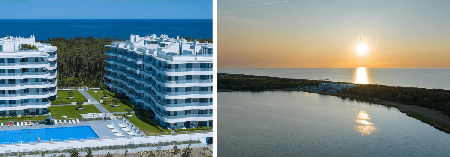 To położenie tworzy unikalny mikroklimat: z jednej strony morska bryza, z drugiej – łagodzące wpływy jeziora. Dzięki temu życie w Rogowo Pearl nie ogranicza się do dwóch letnich miesięcy. Tu warto być o każdej porze roku – jesienią, gdy nad Bałtykiem pojawiają się puste plaże i spektakularne zachody słońca, zimą, gdy cisza podkreśla wyjątkowość miejsca, czy wiosną, kiedy natura budzi się na nowo.