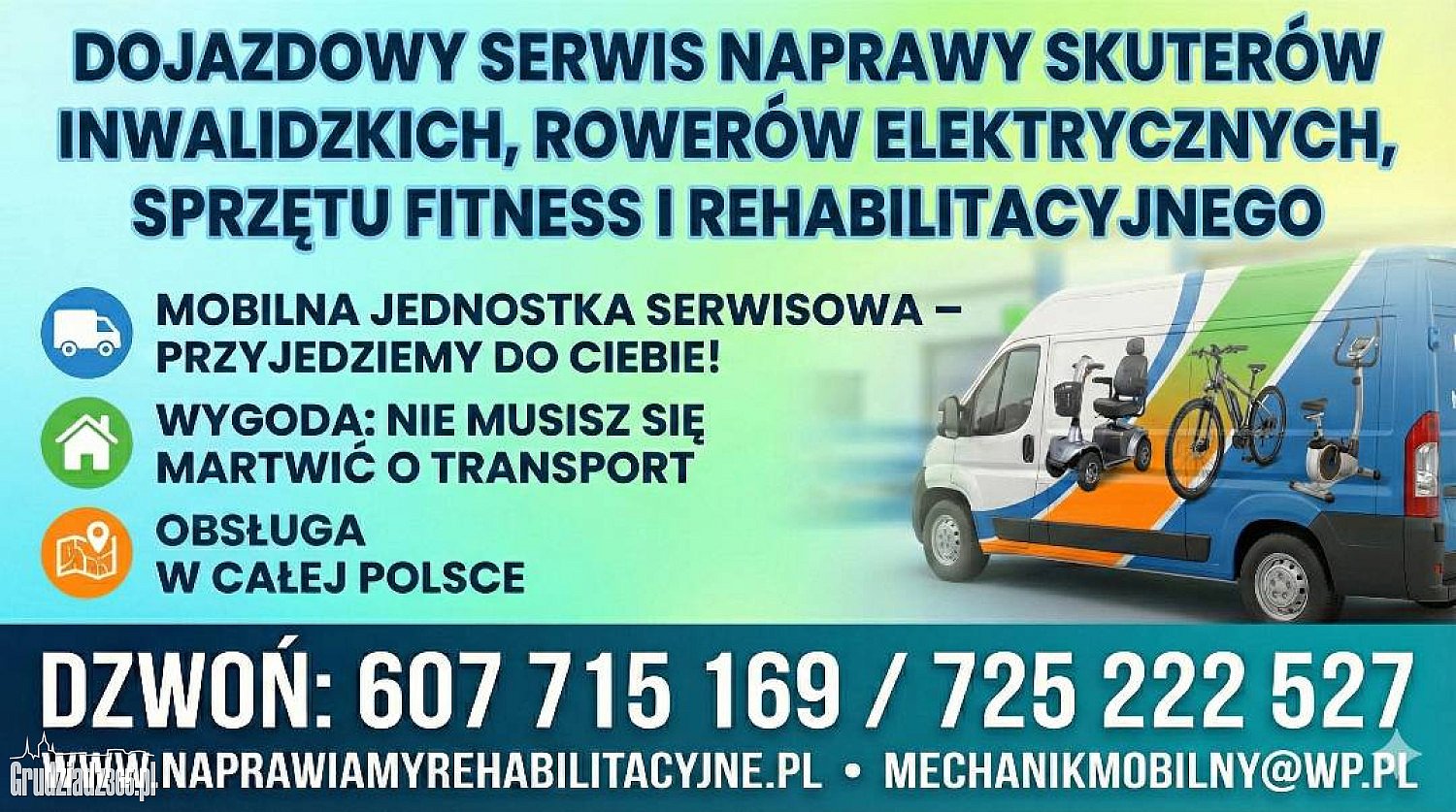 Dojazdowy Serwis Naprawy to profesjonalny zespół techników specjalizujących się w serwisie skuterów inwalidzkich Shoprider, Imperial, Delux, Perrero, Electroride, Faster, Frost i innych modeli, a także rowerów trójkołowych, rowerów elektrycznych, sprzętu rehabilitacyjnego, sprzętu fitness oraz rotorów medycznych. Nasza mobilna jednostka dojeżdża bezpośrednio do klienta.