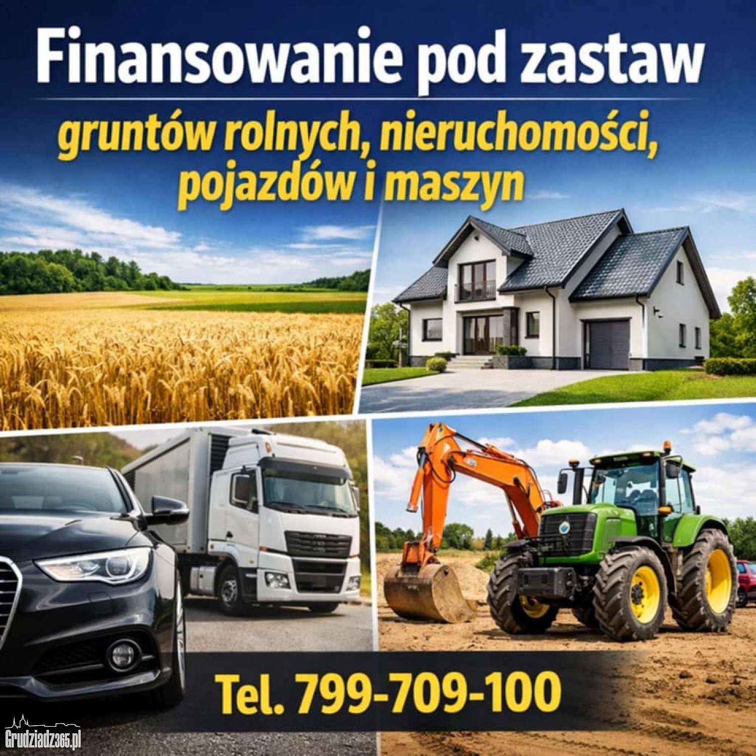 Potrzebujesz gotówki? Oferujemy finansowanie pod zastaw gruntów rolnych, nieruchomości, pojazdów i maszyn. Szybko, bez zbędnych formalności i z indywidualnym podejściem. Zadzwoń teraz Nie zwlekaj – decyzja nawet tego samego dnia!