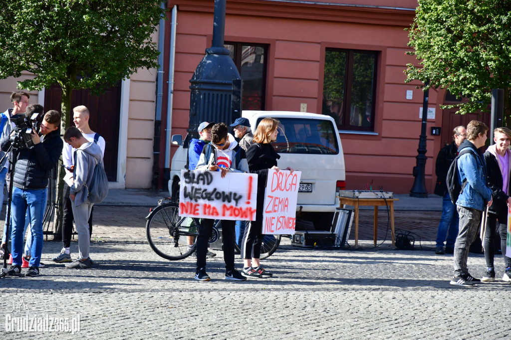 Protest tysięcy miast również w Grudziądzu 20 września cały świat usłyszał głos młodego pokolenia. Postulaty protestujących: 1. Żądamy prowadzenia polityki klimatycznej w oparciu o aktualne stanowisko nauki wyrażone w najnowszych raportach Międzynarodowego Zespołu ds. Zmian Klimatu (IPCC) powołanego przez ONZ. Oczekujemy, że sugerowane przez środowisko naukowe rozwiązania będą wdrażane niezwłocznie we współpracy międzynarodowej. 2. Wzywamy rząd polski, by oficjalnie uznał katastrofę klimatyczną poprzez ogłoszenie stanu kryzysu klimatycznego. Kwestia kryzysu nie może być przedmiotem ideologicznych sporów - w obliczu katastrofy musimy mówić wspólnym głosem, ponad podziałami. 3. Domagamy się zawarcia kompleksowej i aktualnej wiedzy o mechanizmach kryzysu klimatycznego w podstawie programowej na wszystkich szczeblach edukacji, przy zapewnieniu kadrze nauczycielskiej obowiązkowych szkoleń w tym zakresie. Jednocześnie edukację klimatyczną w pełnym zakresie swoich kompetencji powinny zapewniać samorządy lokalne. 4. Żądamy by media wzięły na siebie odpowiedzialność za uświadamianie społeczeństwa o bezpośrednich zagrożeniach związanych z kryzysem klimatycznym. Wzywamy do priorytetyzacji tematu katastrofy klimatycznej w przekazie medialnym oraz posługiwania się językiem odzwierciedlającym wagę problemu. 5. Żądamy przyjęcia przez parlament RP ustawy powołującej ekspercką i niezależną Radę Klimatyczną, której zadaniem będzie opracowanie strategii osiągnięcia neutralności klimatycznej Polski do roku 2040 oraz kontrola realizacji tej strategii. Ustawa ta musi być stworzona przy aprobacie środowiska naukowego, maksymalnej transparentności i przy szerokich konsultacjach społecznych. 6. Oczekujemy podjęcia natychmiastowych kroków prowadzących do przeprowadzenia sprawiedliwej transformacji gospodarki w celu redukcji emisji gazów cieplarnianych. Wymagamy by respektowano prawa i potrzeby wszystkich których dotkną skutki transformacji, szczególnie osób zatrudnionych w sektorach energetyki, rolnictwa, przemysłu i transportu.
