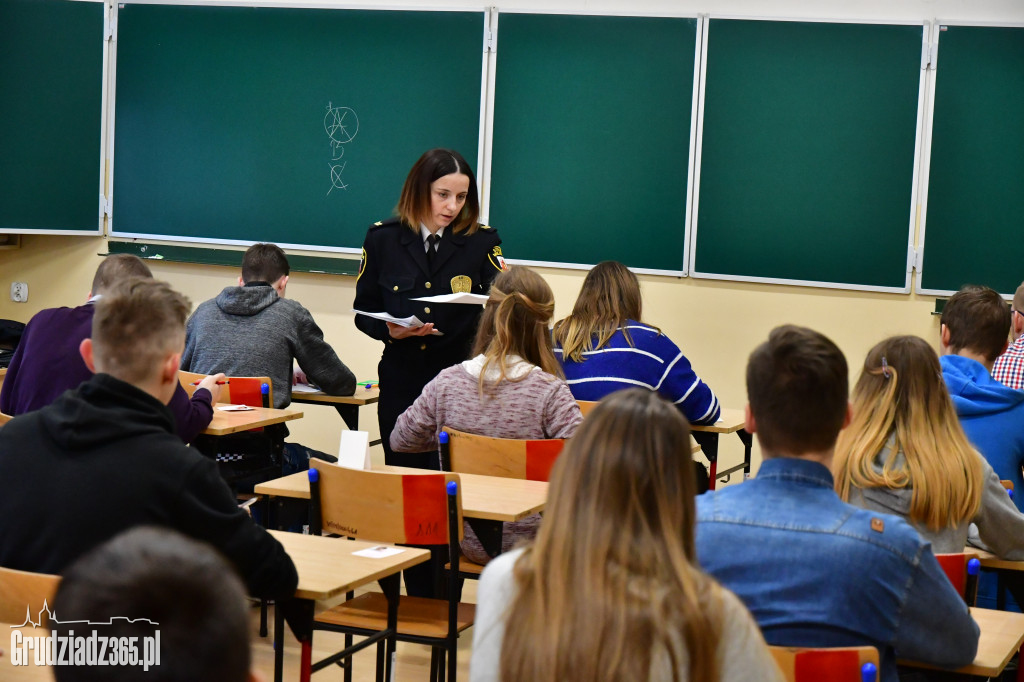 Pierwszy etap Olimpiady Wiedzy o Bezpieczeństwie - Bezpieczny i przyjazny region. W szranki stanęło 68 uczniów szkół ponadgimnazjalnych z terenu Grudziądza.