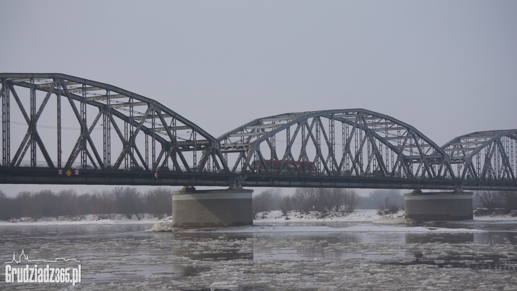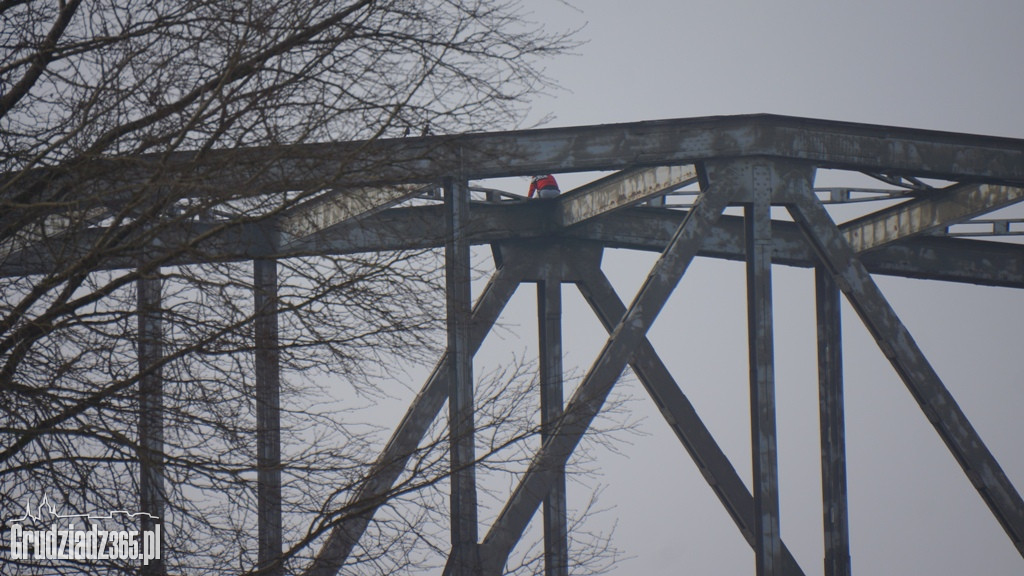 Mężczyzna stojący na przęśle mostu w Grudziądzu
